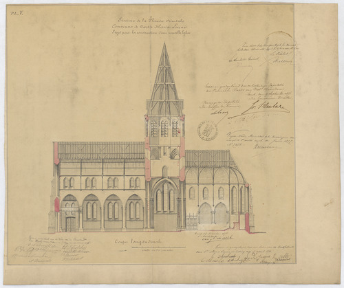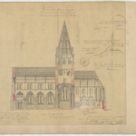 Opschrift: Province de la Flandre Orientale. Commune de Bachte Maria Leerne. Projet pour la construction d'une nouvelle église. Omschrijving plan: langsdoorsnede Datum KCML: 13/05/1876 Archiefnummer: O0284