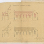 Opschrift: Herstelling van de O.L.V. kerk der Stad Deynze Omschrijving plan: langs- en dwarsdoorsnede van de zijbeuk, huidige toestand en ontwerp Datum KCML: deze informatie wordt niet vermeld op het archiefstuk Archiefnummer: O0256