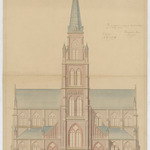 Opschrift: Ontwerp der nieuw te bouwen kerk in de stad Eecloo Omschrijving plan: opstand voorgevel Datum KCML: 27/05/1865 Archiefnummer: O0369