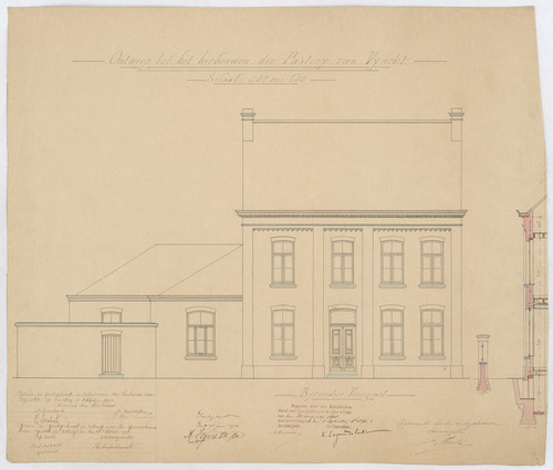 Opschrift: Ontwerp tot het herbouwen der pastorij van Vynckt. Omschrijving plan: opstand voorgevel Datum KCML: 31-8-1901 Archiefnummer: O0306