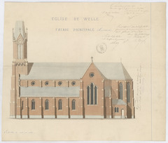 Opschrift: Eglise de Welle Omschrijving plan: opstand zijgevel 1 Datum KCML: 07/07/1870 Archiefnummer: O0326