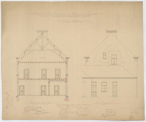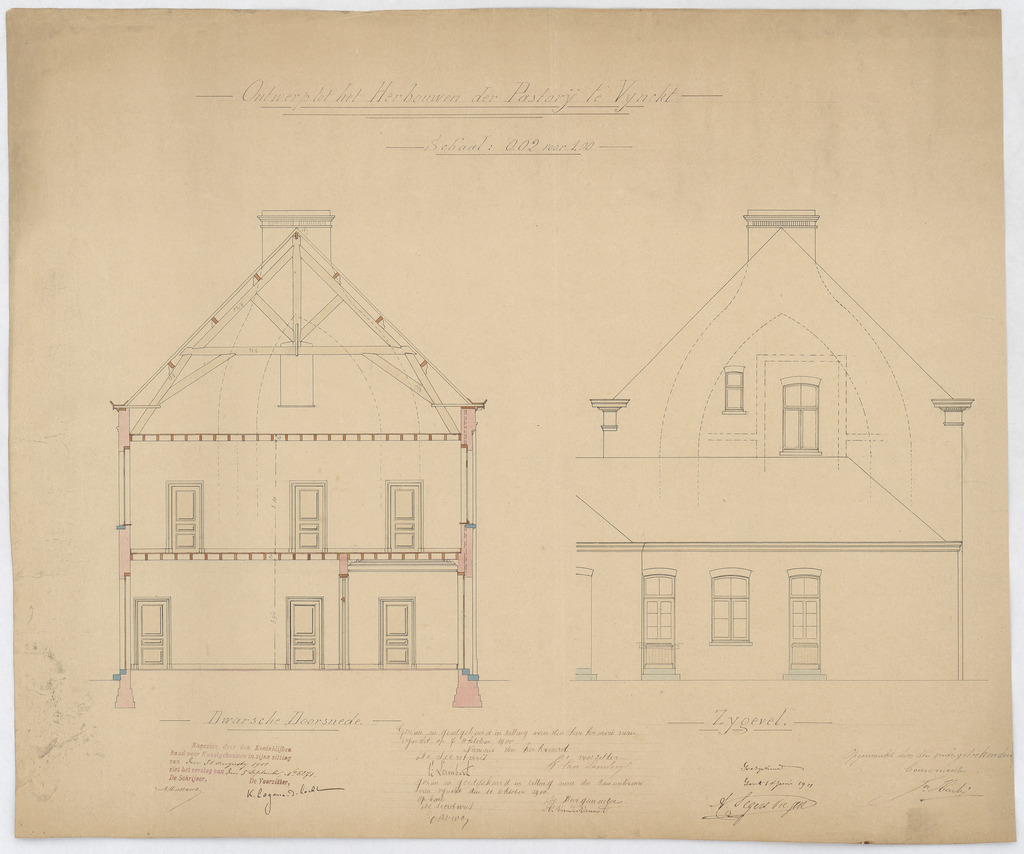 Opschrift: Ontwerp tot het herbouwen der pastorij van Vynckt. Omschrijving plan: opstand zijgevel en dwarsdoorsnede Datum KCML: 31-8-1901 Archiefnummer: O0307