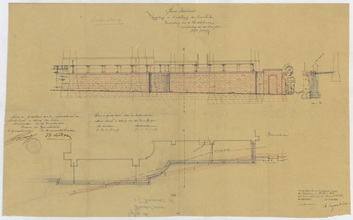 Opschrift: Gemeente Denderleeuw. Vergroting en herstelling der parochieale. Vernieuwing van de kerkhofmuur. Omschrijving plan: kerkhofmuur: vooraanzicht en plattegrond Datum KCML: 22-6-1901 Archiefnummer: O0312