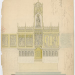 Opschrift: Maïtre autel de St. Barthelemy. Omschrijving plan: vooraanzicht hoogaltaar Datum KCML: 26/06/1886 Archiefnummer: O0457_02