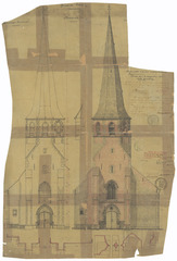 Opschrift: Gemeente Idegem. Parochiale Kerk. Omschrijving plan: opstand voorgevel, Huidige staat en ontwerp Datum KCML: 20-11-1909 Archiefnummer: O0479