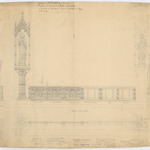 Opschrift: Collégiale de St. Barthélemy à Grammont. Projet pour le placement d'une table de communion et des statues du Sacré Coeur de Jésus et Saint Coeur de Marie. Omschrijving plan: opstand en plattegrond plaatsing beelden Datum KCML: 25-2-1905 Archiefnummer: O0466