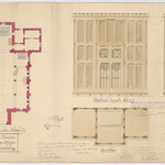 Opschrift: Provincie Oost-Vlaanderen. Parochiale kerk van Ottergem. Ontwerp van bemeubeling Omschrijving plan: plattegrond met plaatsing meubilair, plattegrond, voor- en zijaanzicht biechtstoel Datum KCML: 16-2-1900 Archiefnummer: O0416