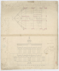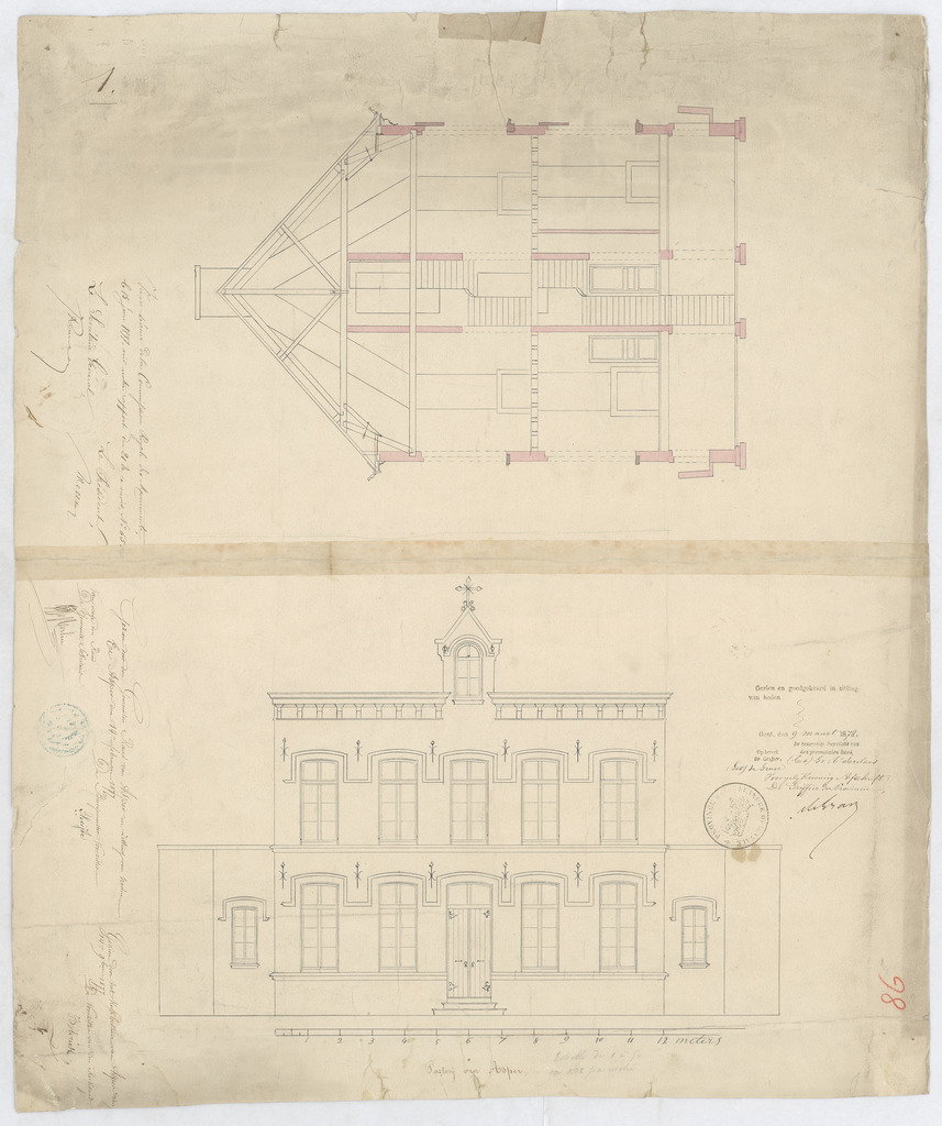 Drager: papier Techniek: pen, opgehoogd met aquarel Afmetingen (h x b in mm): 560 x 660 mm Schaal: 1/50