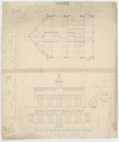 Opschrift: Pastorij van Asper Omschrijving plan: opstand voorgevel en doorsnede Datum KCML: 15/06/1877 Archiefnummer: O0447