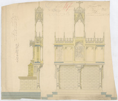 Opschrift: deze informatie wordt niet vermeld op het archiefstuk Omschrijving plan: voor- en zijaanzicht zijaltaar Datum KCML: 26/06/1886 Archiefnummer: O0458