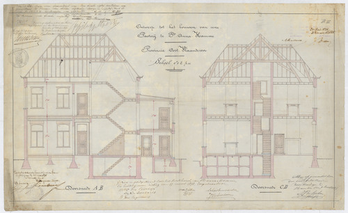 Opschrift: Ontwerp tot het bouwen van eene pastorij te St.Anna-Hamme. Provincie Oost-Vlaanderen. Omschrijving plan: doorsneden op A-B en op C-D Datum KCML: 24/04/1895 Archiefnummer: O0536