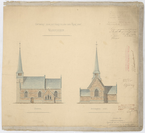 Opschrift: Ontwerp voor het herstellen van de kerk van Vloersegem. Omschrijving plan: opstanden achter- en zijgevel. Datum KCML: 27-9-1902 Archiefnummer: O0504