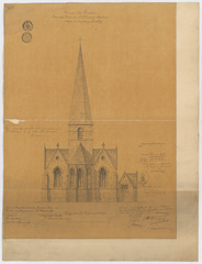 Opschrift: Provincie Oost-Vlaanderen. Parochiekerk van O.L.Vrouw te Berchem. Ontwerp tot vergrooting en herstelling. Omschrijving plan: opstand O-gevel Datum KCML: deze informatie wordt niet vermeld op het archiefstuk Archiefnummer: O0584