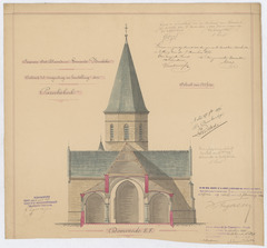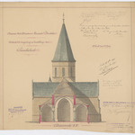 Opschrift: Provincie Oost-Vlaanderen - Gemeente Borsbeke. Ontwerp tot vergrooting en herstelling der parochiekerk. Omschrijving plan: dwarsdoorsnede, doorsnede op E-F Datum KCML: 19/06/1897 Archiefnummer: O0556