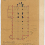 Opschrift: Provincie Oost-Vlaanderen. Parochiekerk van O.L.Vrouw te Berchem. Ontwerp tot vergrooting en herstelling. Omschrijving plan: plattegrond niveau 0 Datum KCML: deze informatie wordt niet vermeld op het archiefstuk Archiefnummer: O0580