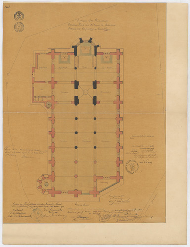 Opschrift: Provincie Oost-Vlaanderen. Parochiekerk van O.L.Vrouw te Berchem. Ontwerp tot vergrooting en herstelling. Omschrijving plan: plattegrond niveau 0 Datum KCML: deze informatie wordt niet vermeld op het archiefstuk Archiefnummer: O0580