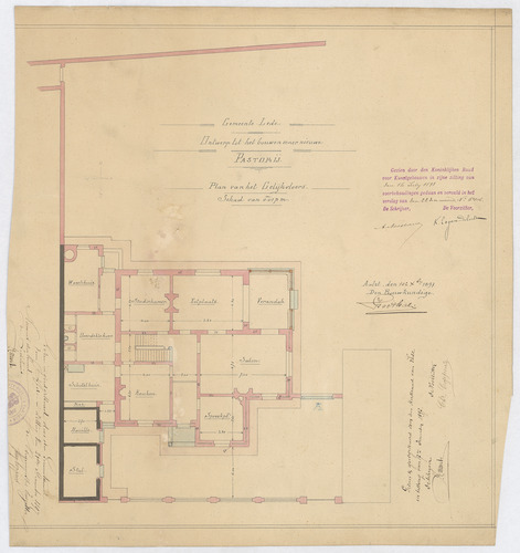 Opschrift: Gemeente Lede. Ontwerp tot het bouwen eener nieuwe pastorij. Omschrijving plan: plattegrond niveau 0 Datum KCML: 16/07/1898 Archiefnummer: O0672
