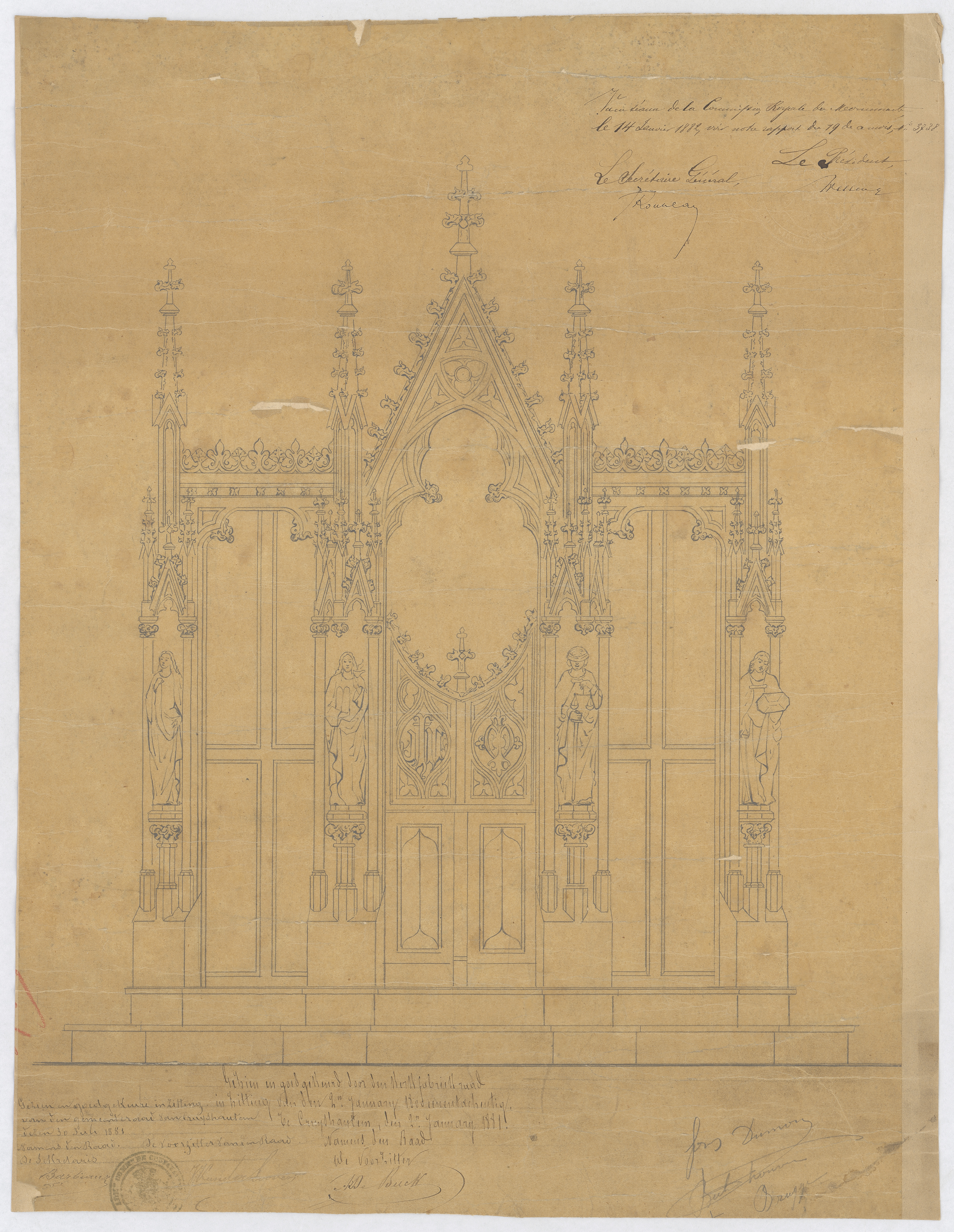 Opschrift: deze informatie wordt niet vermeld op het archiefstuk Omschrijving plan: vooraanzicht biechtstoel Datum KCML: 14/01/1882 Archiefnummer: O0645