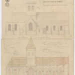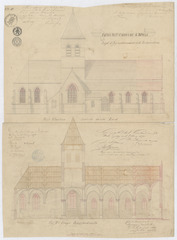 Opschrift: Eglise de St. Sauveur à Wieze. Projet d'agrandissement Omschrijving plan: opstand zijgevel en langsdoorsnede Datum KCML: 20/08/1870 Archiefnummer: O0668
