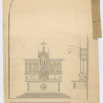 Opschrift: Hoogaltaar voor de parochiekerk tot Smetlede Omschrijving plan: plattegrond, voor- en zijaanzicht hoogaltaar Datum KCML: 5-4-1902 Archiefnummer: O0682_02