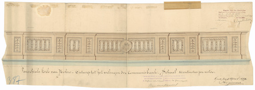 Opschrift: Parochiale kerk van Nokere. Ontwerp tot het verlengen der communiebank. Omschrijving plan: vooraanzicht communiebank Datum KCML: 12-7-1902 Archiefnummer: O0654_02