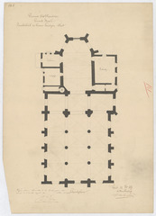 Opschrift: Provincie Oost-Vlaanderen. Gemeente Basel. Parochiekerk in haren huidigen staat. Omschrijving plan: plattegrond niveau 0 Datum KCML: deze informatie wordt niet vermeld op het archiefstuk Archiefnummer: O0624