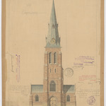 Opschrift: Vergrooting en herstelling der kerk van Saffelaere. Omschrijving plan: opstand voorgevel Datum KCML: 18-11-1905 Archiefnummer: O0707