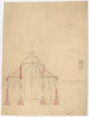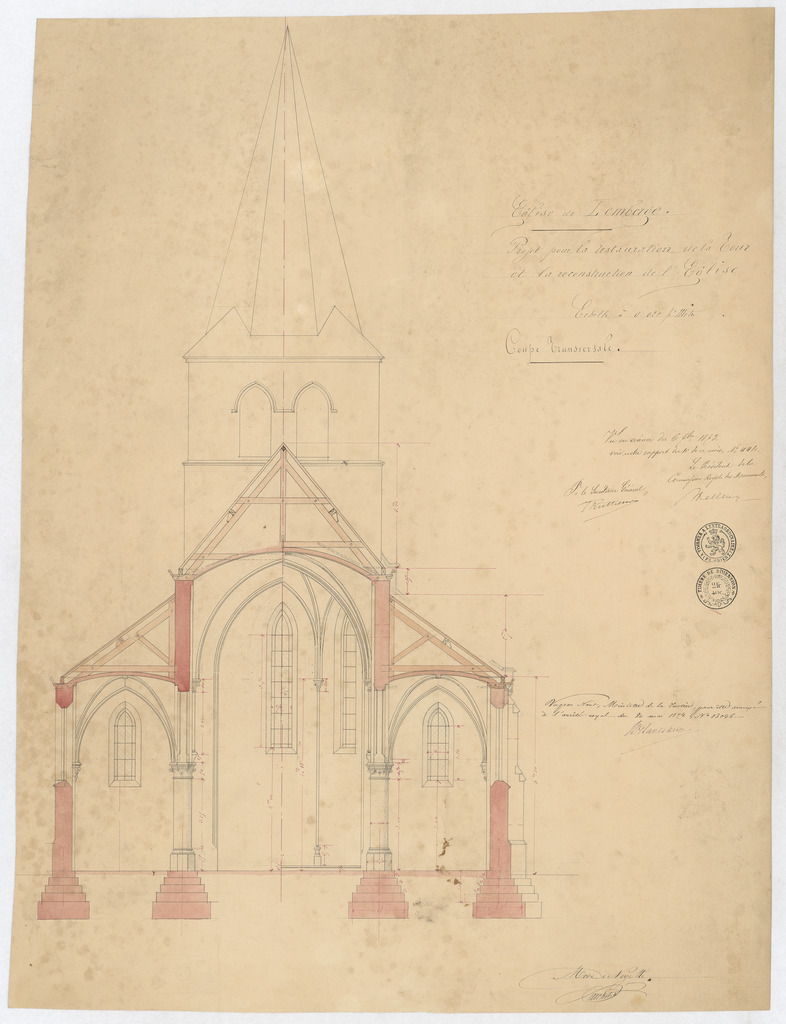Opschrift: Eglise de Lemberge. Projet pour la restauration de la tour et pour la reconstruction de l'Eglise. Omschrijving plan: dwarsdoorsnede Datum KCML: 06/09/1873 Archiefnummer: O0798