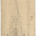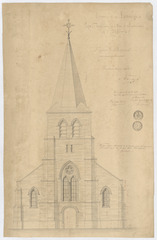 Opschrift: Eglise de Lemberge (Fl. Or.). Projet: restauration de la tour et reconstruction de l'Eglise. Omschrijving plan: opstand voorgevel Datum KCML: 06/09/1873 Archiefnummer: O0795