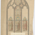 Opschrift: Projet de vitrail pour l'église de Nevele (Fl. Orientale) - Atelier de Vitraux St.Luc à Gand. Omschrijving plan: detailtekening glasraam Datum KCML: 11/07/1896 Archiefnummer: O0835_02
