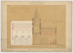 Opschrift: Provincie Oost-Vlaanderen. Parochie Kerk van den H.Martinus te Schelderode. Ontwerp tot vergrooting en herstelling. Omschrijving plan: langsdoorsnede Datum KCML: 11/09/1875 Archiefnummer: O0812