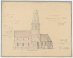 Opschrift: Province de la Flandre Orientale. Eglise paroissiale de St. Eloi, à Vosselare. Projet de restauration. Omschrijving plan: opstand Z-gevel Datum KCML: 11/08/1894 Archiefnummer: O0870