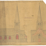 Opschrift: Provincie Oost-Vlaanderen. Gemeente Landegem. Ontwerp tot het herstellen der parochiale kerk. Omschrijving plan: opstanden voorgevel en zuidelijke zijgevel Datum KCML: 6-7-1901 Archiefnummer: O0844