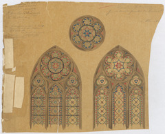 Opschrift: Pamele. Audenarde. Grande double fenêtre du transept... Omschrijving plan: ontwerp glasraam Datum KCML: deze informatie wordt niet vermeld op het archiefstuk Archiefnummer: O0955