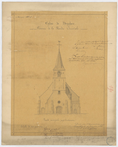 Opschrift: Eglise de Neyghem. Province de la Flandre Orientale. Omschrijving plan: opstand voorgevel Datum KCML: 15/01/1887 Archiefnummer: O0903