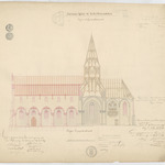 Opschrift: Ancienne église de Scheldewindeken. Projet d'agrandissement. Omschrijving plan: langsdoorsnede Datum KCML: 12/06/1869 Archiefnummer: O0937