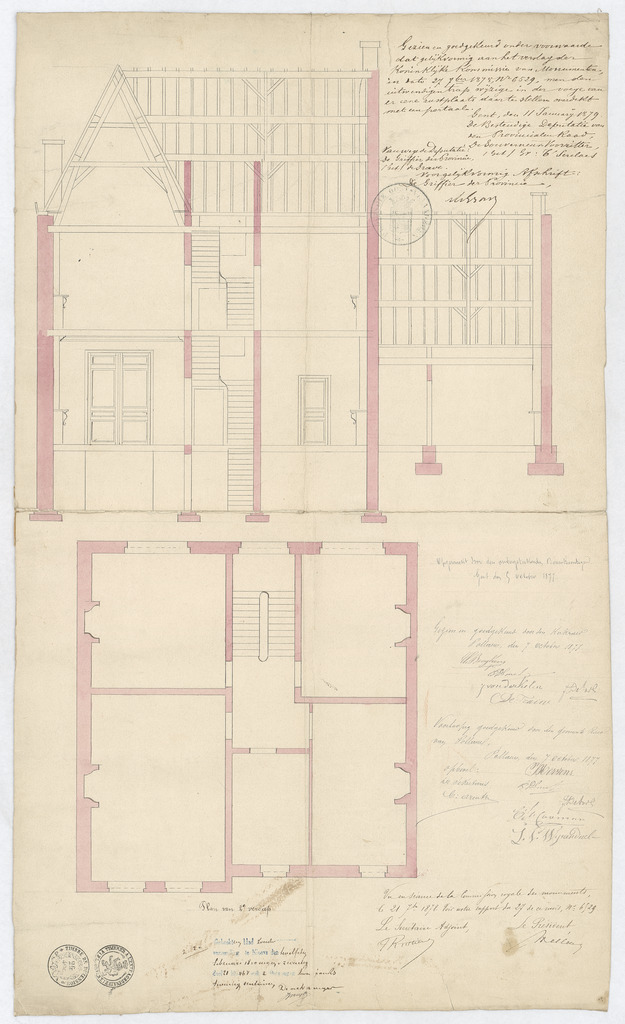 Opschrift: deze informatie wordt niet vermeld op het archiefstuk Omschrijving plan: plattegrond verdiep en doorsnede Datum KCML: 21/09/1878 Archiefnummer: O0911