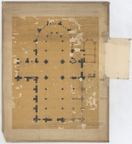 Opschrift: ...e d'Audenarde. Eglise de Notre Dame de Pamele. Projet de restauration. Omschrijving plan: plattegrond niveau 0 (aangepast ontwerp) Datum KCML: 02/10/1897 Archiefnummer: O0939_02