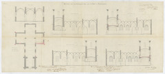 Opschrift: Ontwerp van herstellingswerken aen de Kerk te Landscauter Omschrijving plan: plattegrond, langs- en dwarsdoorsnede Datum KCML: 02/07/1864 Archiefnummer: O0917