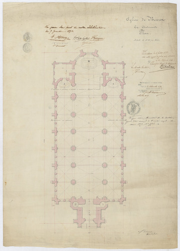 Opschrift: Eglise de Beveren lez Audenaerde. Omschrijving plan: plattegrond niveau 0 Datum KCML: 06/07/1872 Archiefnummer: O0990