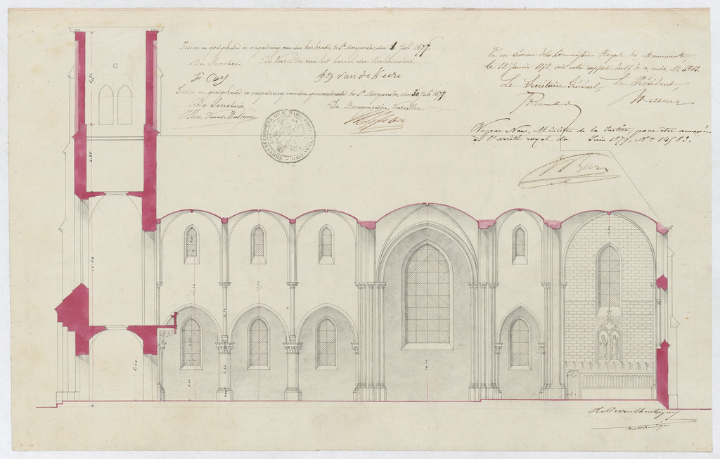 Opschrift: deze informatie wordt niet vermeld op het archiefstuk Omschrijving plan: langsdoorsnede Datum KCML: 12/01/1878 Archiefnummer: O1090