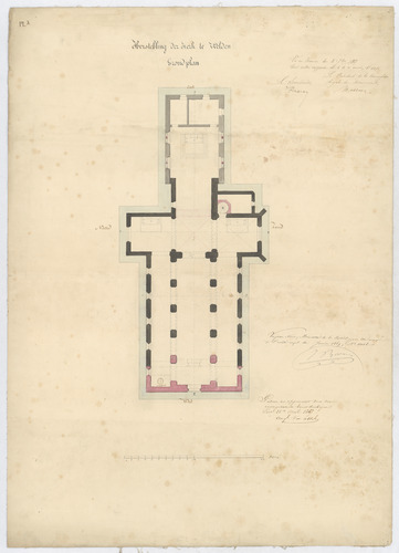 Opschrift: Herstelling der Kerk te Welden. Omschrijving plan: plattegrond niveau 0 Datum KCML: 03/09/1867 Archiefnummer: O1023