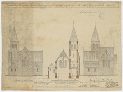 Opschrift: Provincie Oost-Vlaanderen. Gemeente Baveghem. Ontwerp tot het vergrooten der parochiale kerk. Vergrootte staat. Omschrijving plan: opstand achter- en zijgevel, dwarsdoorsnede Datum KCML: 29/05/1909 Archiefnummer: O1095