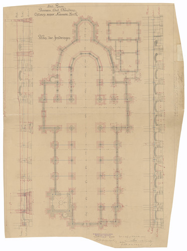 Opschrift: Stad Ronse. Provincie Oost-Vlaanderen. Ontwerp eener Nieuwe Kerk Omschrijving plan: plattegrond funderingen Datum KCML: deze informatie wordt niet vermeld op het archiefstuk Archiefnummer: O1040