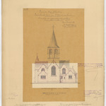 Opschrift: Provincie Oost-Vlaanderen. Parochiale Kerk van St. Martens Laethem. Ontwerp tot vergrooting en herstelling. Omschrijving plan: opstand achtergevel (aangepast ontwerp) Datum KCML: 26/06/1897 Archiefnummer: O1114_01