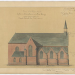 Opschrift: Province de la Flandre Orientale. Eglise de Notre Dame à Petit Sinay. Projet d'agrandissement Omschrijving plan: opstand zijgevel 1 Datum KCML: 13/10/1879 Archiefnummer: O1211