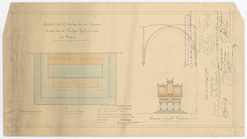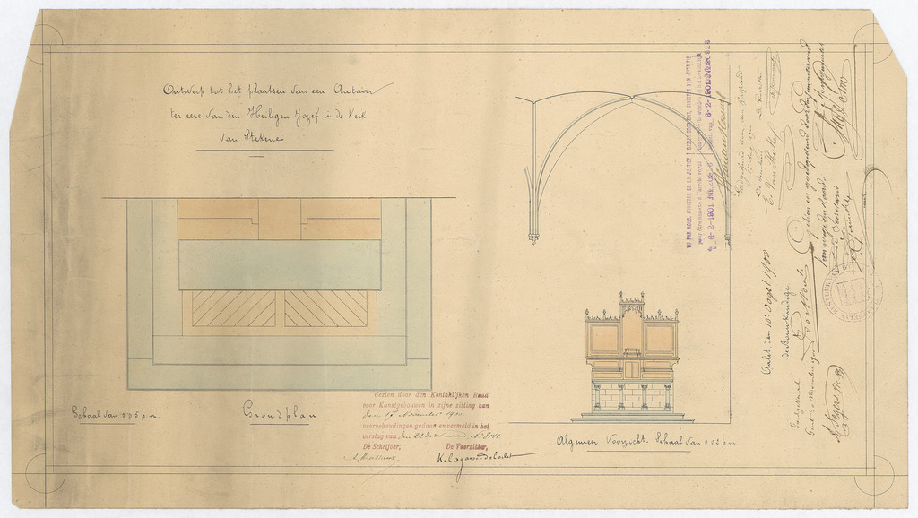 Opschrift: Ontwerp tot het plaatsen van een Autaar ter eere van den Heiligen Jozef in de Kerk van Stekene. Omschrijving plan: plattegrond een aanzicht plaatsing altaar Datum KCML: 17/11/1900 Archiefnummer: O1201