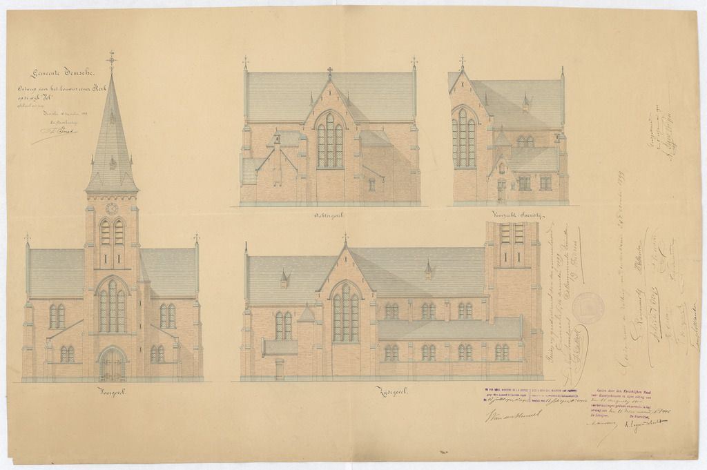 Opschrift: Gemeente Temsche, Ontwerp voor het bouwen eener Kerk op de wijk "Vel". Omschrijving plan: opstanden gevels Datum KCML: 11/08/1900 Archiefnummer: O1263
