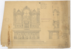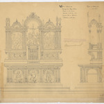 Opschrift: Kerk te Steendrop. Ontwerp van Hoog-Altaar: trappen in witte marmer. Onderdeel in witte steen met marmeren blad en Kolonnetten. Retabel in witte steen. Omschrijving plan: voor- en zijaanzicht hoogaltaar Datum KCML: 19/04/1902 Archiefnummer: O1244_02