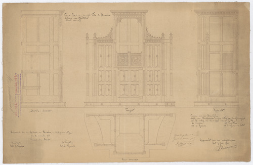 Opschrift: Nieuwe Kerk van de wijk Velle te Temsche. Ontwerp van biechtstoelen. Omschrijving plan: plattegrond, voor- en zijaanzicht biechtstoel Datum KCML: 4-2-1905 Archiefnummer: O1269